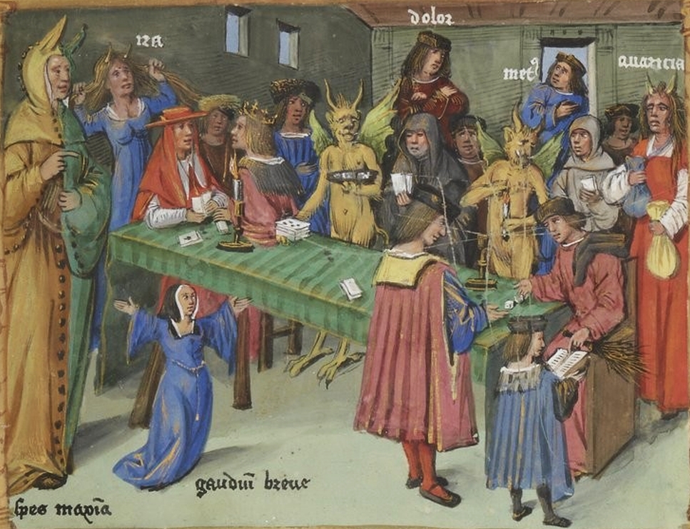 Miniature, Dialogue sur le Jeu (1505), François de Moulins, bibliothèque nationale de Paris.