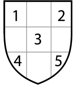 Les chiffres dans chaque partie de l’écu indiquent l’ordre du blasonnement lors de la lecture du blason.