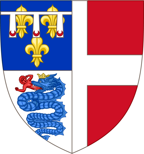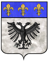 | « D’argent à l’aigle bicéphale de sable, au chef d’azur chargé de trois fleurs de lys d’or. » |