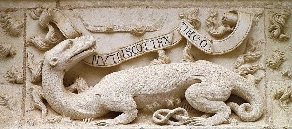 La Reine Claude a manqué plus d’une fois de marcher sur la queue de la salamandre géante de François 1er, qui avait l’habitude de se prélasser au coin du feu, voire dans le feu… Lorsqu’un ensemble de bûches s’écroulait dans les grandes cheminées des châteaux où résidait le roi, ce n’était pas toujours dû aux effets de la combustion !
