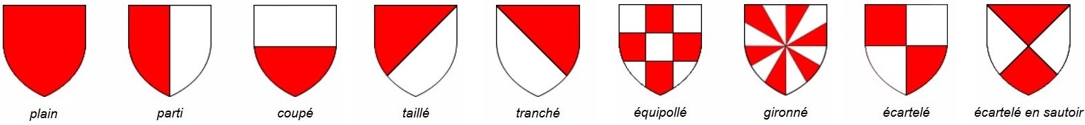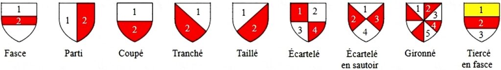 La division régulière en plusieurs zones géométriques d’un écu s’appelle “partition” ; cela correspond souvent à l’alliance de deux ou plusieurs parties. Le partitionnement est le premier découpage physique de base d’un écu.